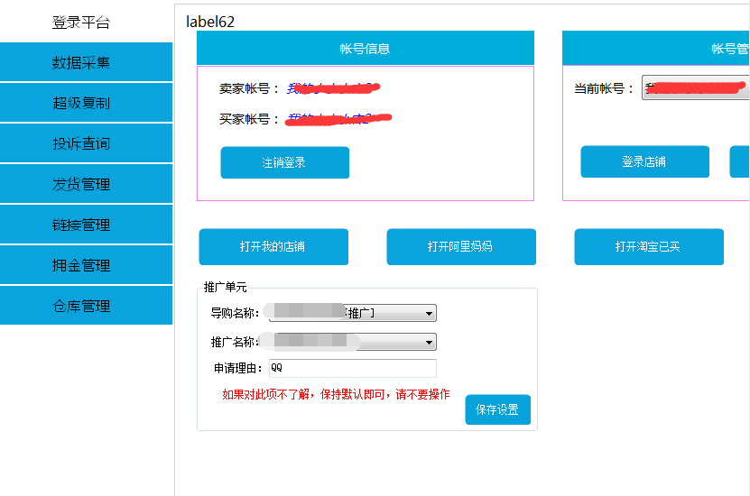 首先要有一个淘宝的卖家账号然后登陆到软件,如下图所示(没有的话去淘宝注册一个)