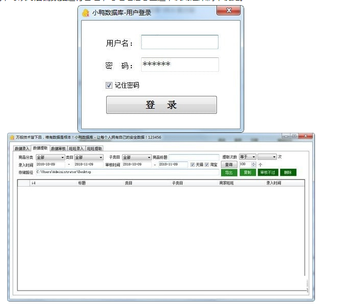 ③建立好的账户可以登录小鸭数据库,进行录入和提取数据。