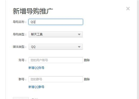 4、新建导购推广后,会有各种渠道类型,这里以QQ来说明一下。如下图填入相应的信息。