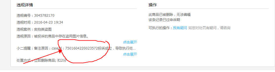在申诉期的违规都在待处理中,找到你要处理的违规 查看下违规原因 ,里面有一串750开头的数字,这是 投诉编号 ,记住是750开头的