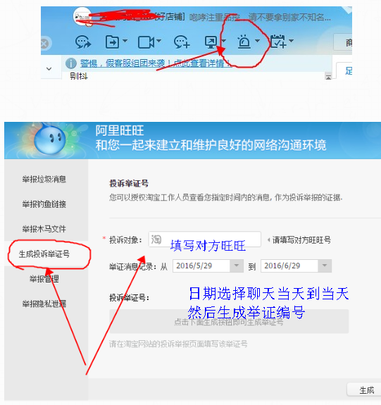 上家回复后 我们生成投诉举证号 生成方法如图。