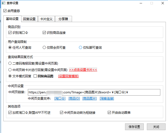 2.中间页自动转为短连接,如果文本回复,并且在文案里面插入了下单链接,建议勾选,其他情况无需勾选。