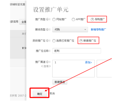 是个人的话就选择导购推广、选择新建淘宝联盟推广位、点击确定