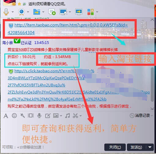 返利机器人这个玩意,好像是从去年底的时候就有了,其实和普通的购物返利网差不多,所不同的是,据目前搜一客所知的,返利机器人可以实现无人操作模式,其运作方法为:加他们机器人QQ号码为好友后,把你需要购买的淘宝链接通过QQ窗口发送给机器人,机器人马上给出淘宝客的链接给你,然后你通过此链接购买,你即可返利.这在搜一客看来,是淘宝客在寒冬之下的一种转变,也凸显出现在的淘宝客,目子越来越难过了.