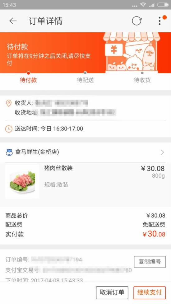 搜一客小编经过实际体验发现,盒马鲜生产生的订单或采用独立的支付系统,盒马鲜生的商品加入购物车后,并不会同时出现在淘宝购物车里。淘宝在这之中,或只起到流量入口的功能。