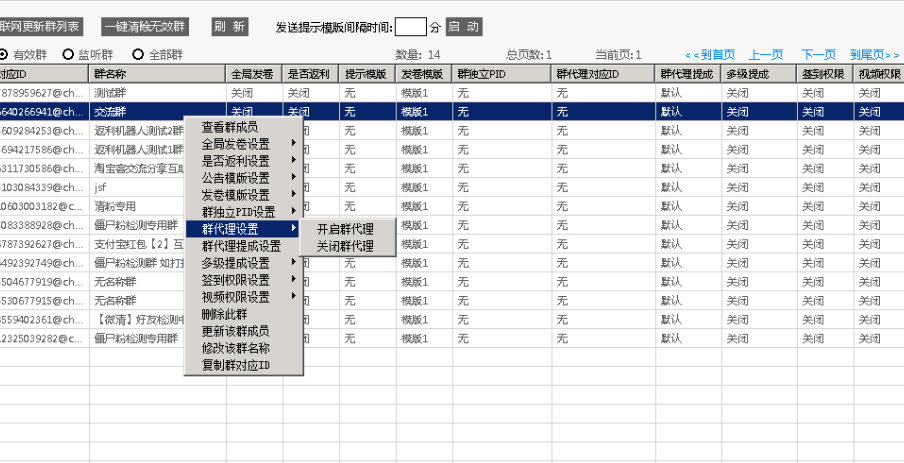 群代理比例设置:会员信息 — 指定会员 —右键复制对应ID —群组管理 —指定群组 — 右键设置群代理设置 —开启群代理 —粘贴复制的对应ID — 群代理提成设置