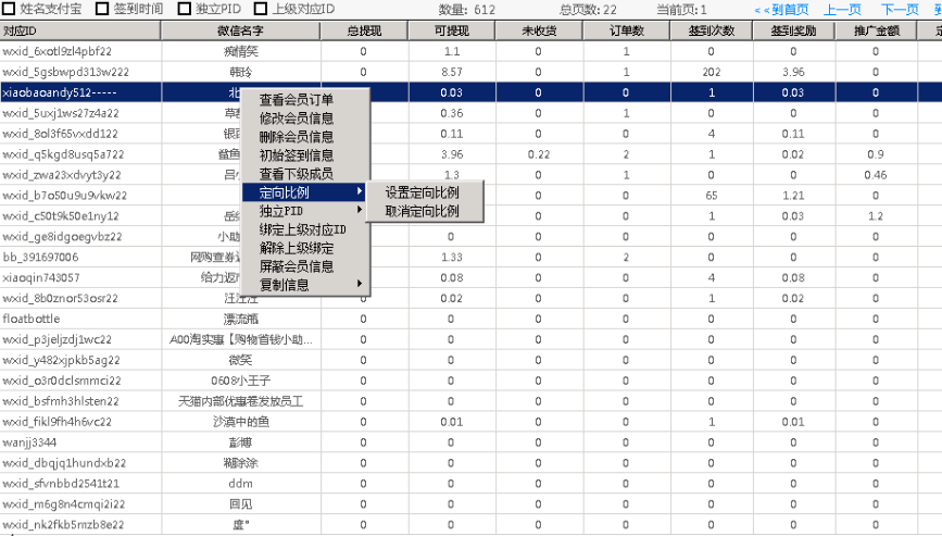 定向比例设置:会员信息 —- 右键指定会员 —- 设置定向比例