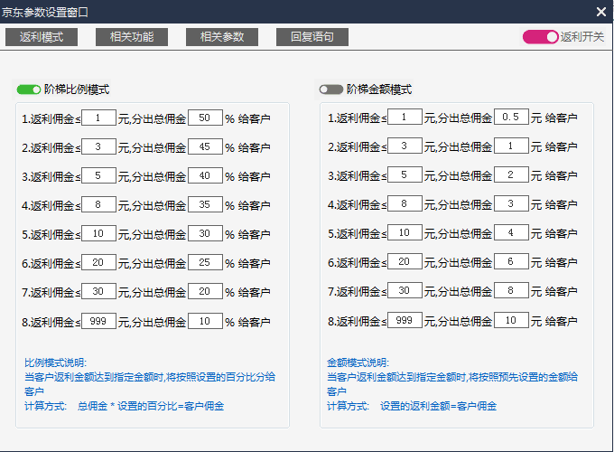 (主要用于大客户,下单量特别多,给予较高返利比例)