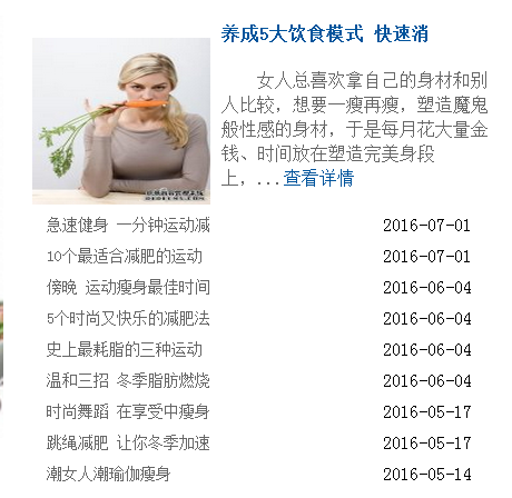 顶部的JS区,其实就是起到一个向某宝商店导流的功能,这里我就不是截图了,有兴趣的可以在百度搜减肥肉排行榜,首页就有这个淘宝客网站。这种方法从搜索引擎导流的效果还是不错的。对于一个只运营一年多的小站来说,权重4,日均流量1000多,我想是一个很不错的成绩,而且观察它的词库,可以发现,他的流量来自精准化很高的长尾词,想必带来的换化效果也是非常可观的。