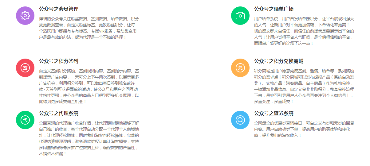 基于微信公众号优惠券系统还是很多的,我们在用的系统有下面的这些功能:
