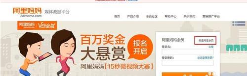 点击进入阿里妈妈官方网站,登陆框中点击“我是淘宝会员”