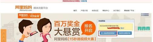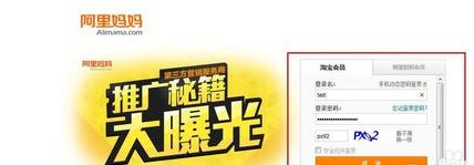 刷入淘宝用户名和密码,进入阿里妈妈联盟