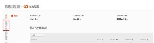 点击左侧导航的“联盟产品”