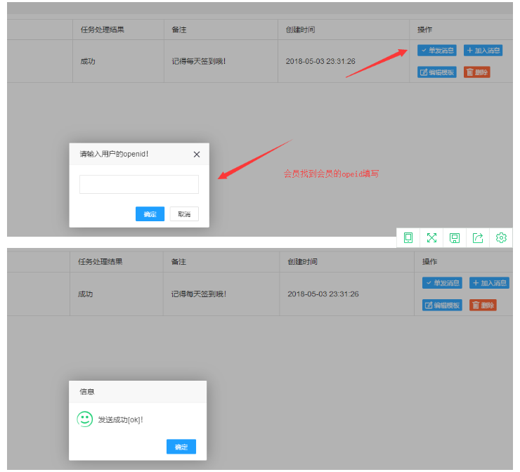 (1)单发消息——输入会员的openid ——确认就发送成功了!