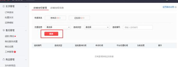 1.2我们需要搜索违规记录,进入拼多多网页以后,默认是不会显示的,我们需要进行搜索,才会显示违规信息,具体如下: