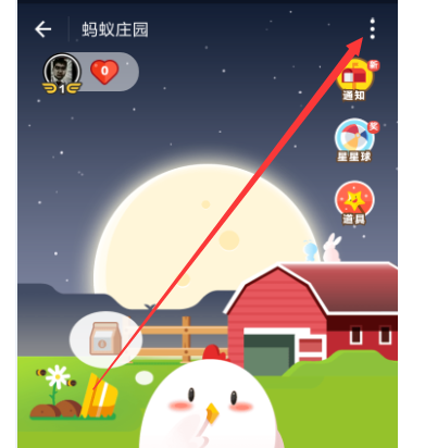 进入到自己的养鸡场后点击右上角的三个点命令菜单。