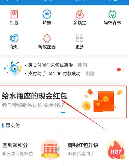 如图点击“给水瓶座的红包”得到红包后,在主界面右上角“卡包”是可以看到的,显示的红包就是参加活动得到的。