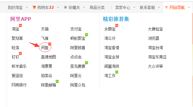接下来呢,在弹出来的一系列的选项中,能看到在【阿里APP】的下面就有【闲鱼】的选项啦。直接点击进入就能进入闲鱼了。如图下图所示: