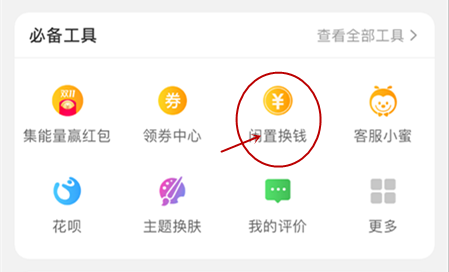 首先打搜一客宝的APP,点击右下方的【我的淘宝】,进入我的淘宝页面以后呢,往下面拉,就能看到【必备工具】那一栏的闲置换钱啦。点击【闲置换钱】就能够进入到闲鱼的页面啦。