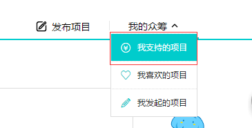 第二步,通过点击【我的众筹】的下拉框里【我支持的项目】;