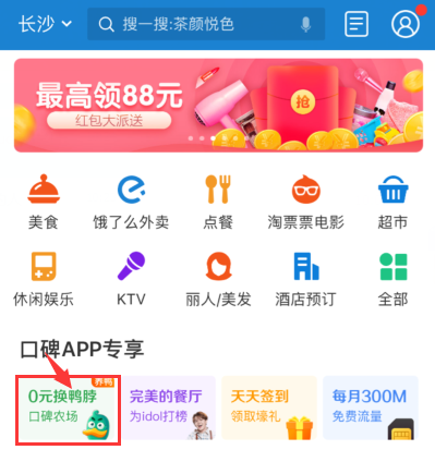 首先呢,我们来了解一下口碑农场除了从口碑的app进入以外,还是可以从支付宝进入的,登录支付宝,选择口碑,然后就能如图所示看到进入口碑农场的图标了。