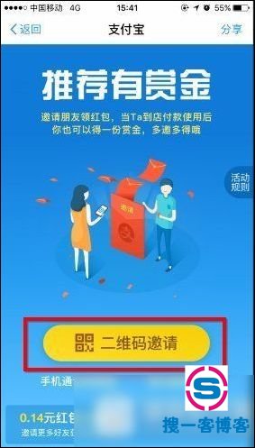 点击第一个免费发红包,就可以看到“二维码邀请”