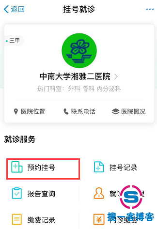 进入后在页面的下方的就诊服务里有预约挂号,点击进入就可以,还有很多的别的服务可以看到挂号纪录、报告查询、就诊人管理、缴费纪录、门诊缴费等,功能还是比较齐全的,意味着不仅仅是可以挂号,那么缴费也可以通过支付宝了哦。还可以看到医院的位置以及联系电话等等资料;