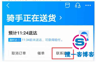 还有就是如果您的订单配送的界面是有骑手的资料的话,那么也可以选择来联系骑手来进行查询您的外卖送到了哪里了,如图所示: