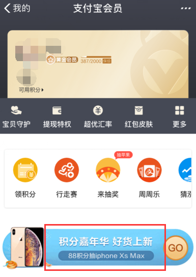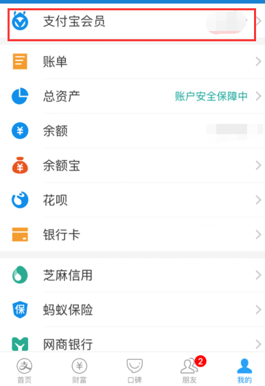 首先,我们使用自己的账号然后登录到支付宝,在【我的】页面中就能够看到支付宝会员的页面了,点击进入;