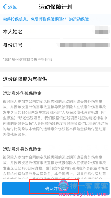 点击进入后就点击我要领取,就能够进入到运动保障计划啦,可以看到运动保障计划能够为您提供运动意外伤残保险金以及运动意外身故保险金。只要您填入您的本人姓名还有身份证号码就能够确认并领取您的运动保障计划了。