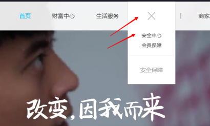 成功进入支付宝的官方网站后,在支付宝官网的右上角有一个“安全保障”,选中后,选择“安全中心”。