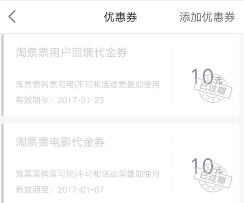 1、首次登录淘票票APP,会送你一张10元电影无门槛优惠券,可以和其他优惠一起使用。如图所示,笔者获得的优惠券(都已过期),感觉自己错过了无数场好电影。