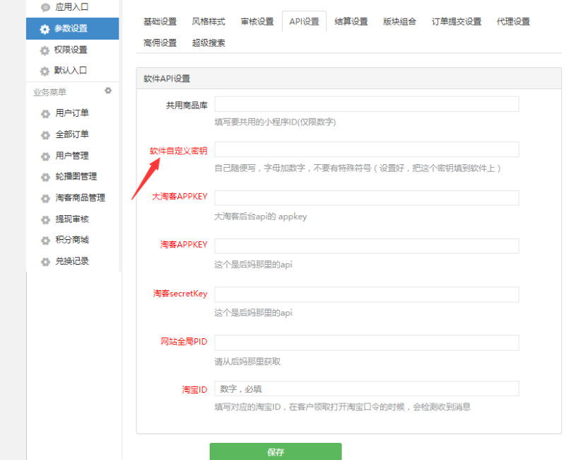 网站后台 》小程序 》切换小程序 》进入小程序(选自己要操作的小程序)》应用 听涛-淘宝客小程序 图3