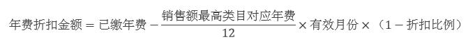 4、跨类目经营(不含新车/二手车及整车(经销商)类目)的商户,年费结算按实际经营期间销售额最高的类目对应的标准进行年费金额及折扣计算;