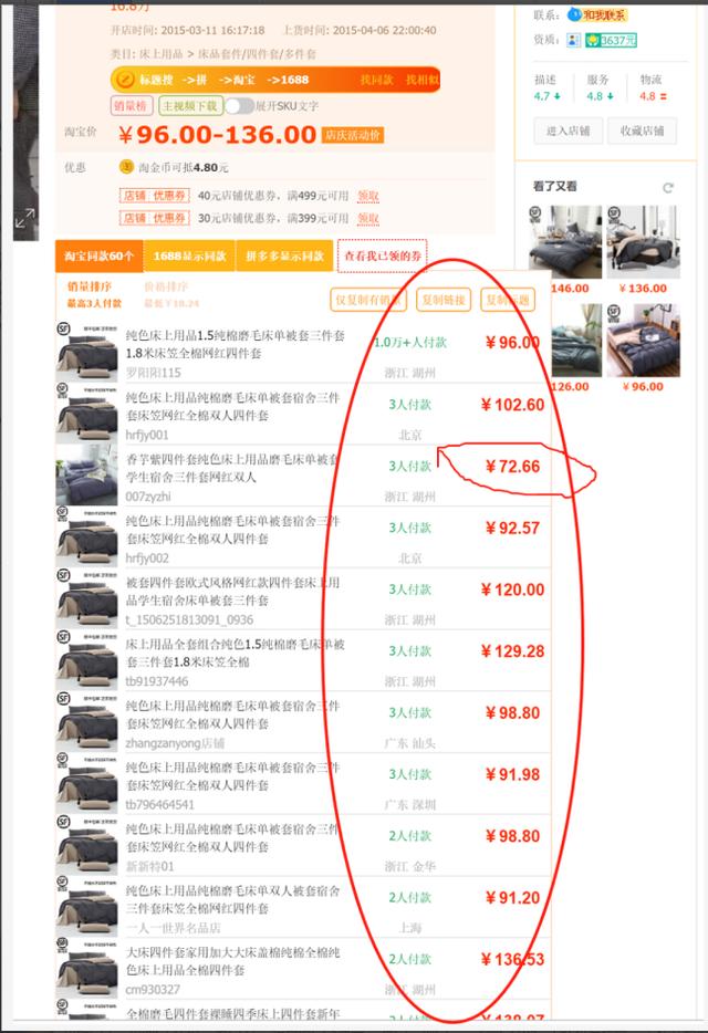 大家看下面的图:从72到136是一样的东西,但是都有人买,这就是千人千面的结果。