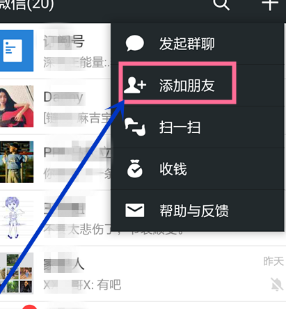 首先打开微信,进入微信界面,然后点击右上角【+】号,然后点击添加朋友。