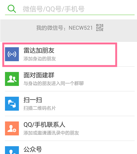您还可以在添加朋友界面选择雷达加朋友,附近的人可以搜索到。
