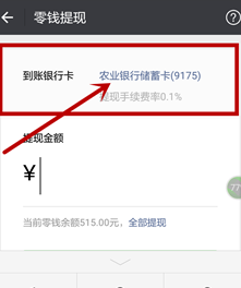 弹出的零钱提现页面中,选择“到账银行卡”,确认自己要提现到哪张银行卡中。
