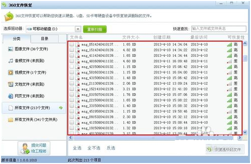 步骤三:扫描完成后,亲们就可以看到手机中被删除的文件了。以msg开头的就是我们想要恢复的文件了。