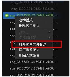 步骤七:录音文件的恢复。若在你恢复的文件中有录音文件的,则在找到想要的录音后暂停播放器,在播放菜单中右键单击“打开选择文件目录”就可以找到该对应的文件了。