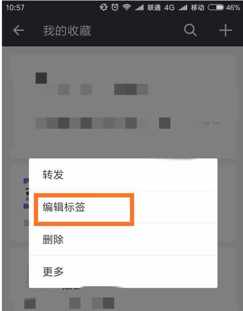 2、然后选择其中一则需要归类的内容,长按这项需要归类的内容,这时候页面就会弹出一个编辑窗口,如下图所示为编辑标签的功能选项: