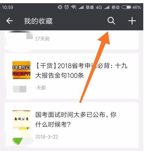 3、这时候大家可以根据系统提供的标签进行选择,或者是自己进行收藏标签的拟定。选择完就会进入到编辑标签的页面,即对收藏内容进行标签化。或者大家选择输入一个自己明白的分类标签名字。输入完成之后,返回到收藏的主页面。在右上角可以看到有一个搜索符号,点击该符号。如下图所示: