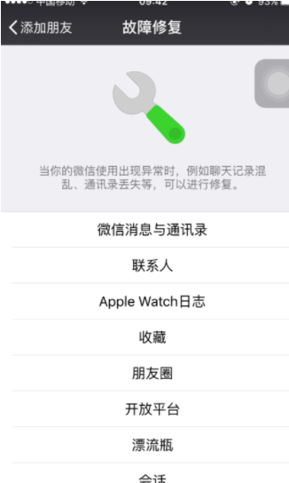 1、微信修复选项只能恢复一次,如果你只修复过微信消息与通讯录,下次再进入故障修复的时候,就会发现找不到“微信消息与修复”这个选项了;