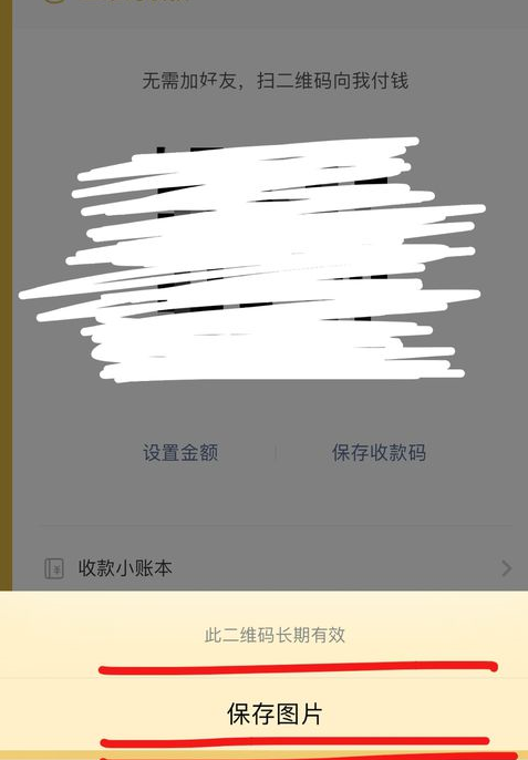 当点击确定“二维码收款”后,最终我们就会进入“二维码收款”界面。长按屏幕会出现“保存图片”选框,选择“保存图片”。之后,界面会弹出一个选框,再单击确定“保存收款码”便可以了。