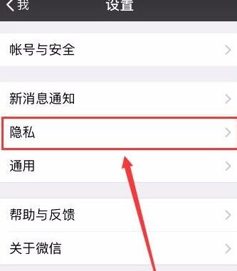 在微信设置页面,我们点击隐私菜单进入我们的隐私信息设置页面。