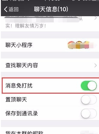 然后将群聊消息免打扰勾选就可以了,这样我们既不会碍着好友的面子了,又不会收到的群聊信息了。
