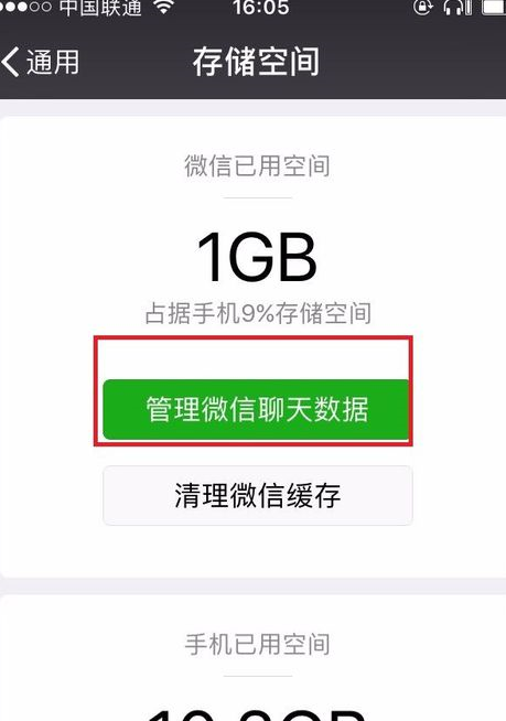 点击“管理微信聊天数据”打开,进入数据管理页面