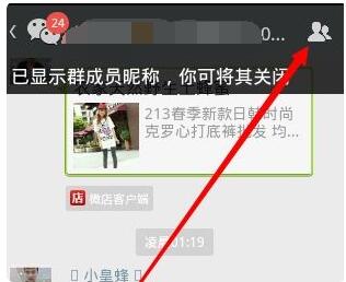 1、大家需要点击进入到微信群聊中,然后点击页面右上角小人头像按钮,如下图所示: