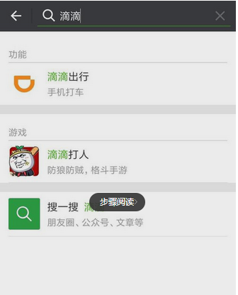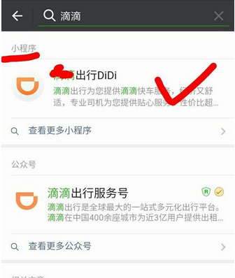 2. 搜索任意小程序,这里只为演示,搜索“某滴”,这里要点击“搜一搜”