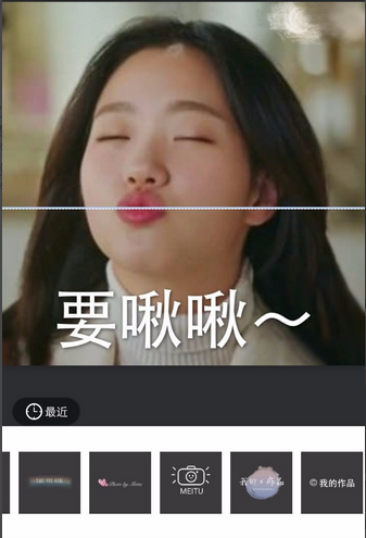 4. 点击“文字”,为喜欢的图片,添加文字部分,点击需要输入的文字,然后调整文字的字体,颜色等,然后通过手势放大缩小文字的大小,最好文字的宽带与图片的宽度基本差不多,贴图片底部。